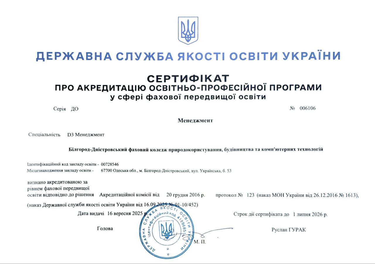 >> Ліцензія на здійснення освітньої діяльності у сфері фахової передвищої освіти